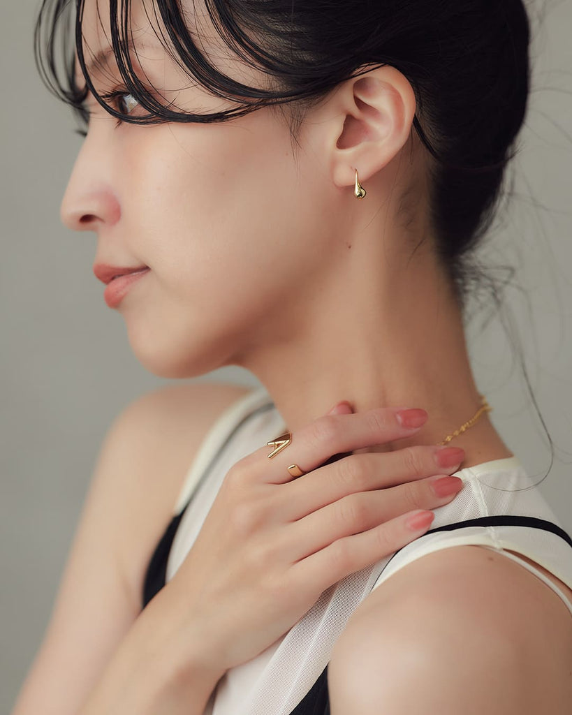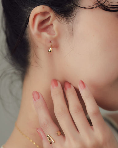 ぽとん、と耳たぶに雫が落ちたようなシルエットのピアス。