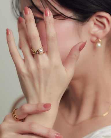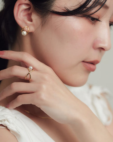大人上品に仕上がるクロスニュアンス2wayパールリング