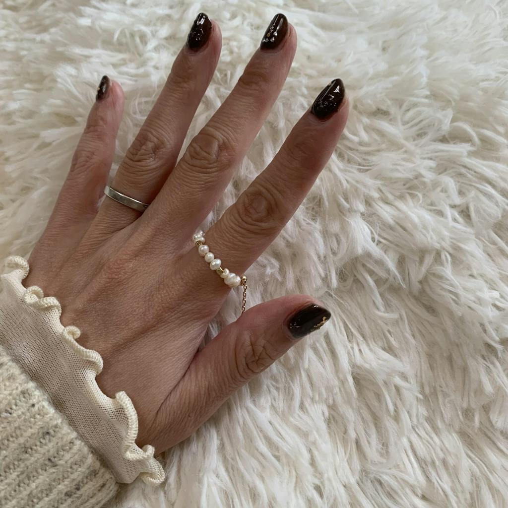 不揃いな天然淡水パールのチェーンリング。