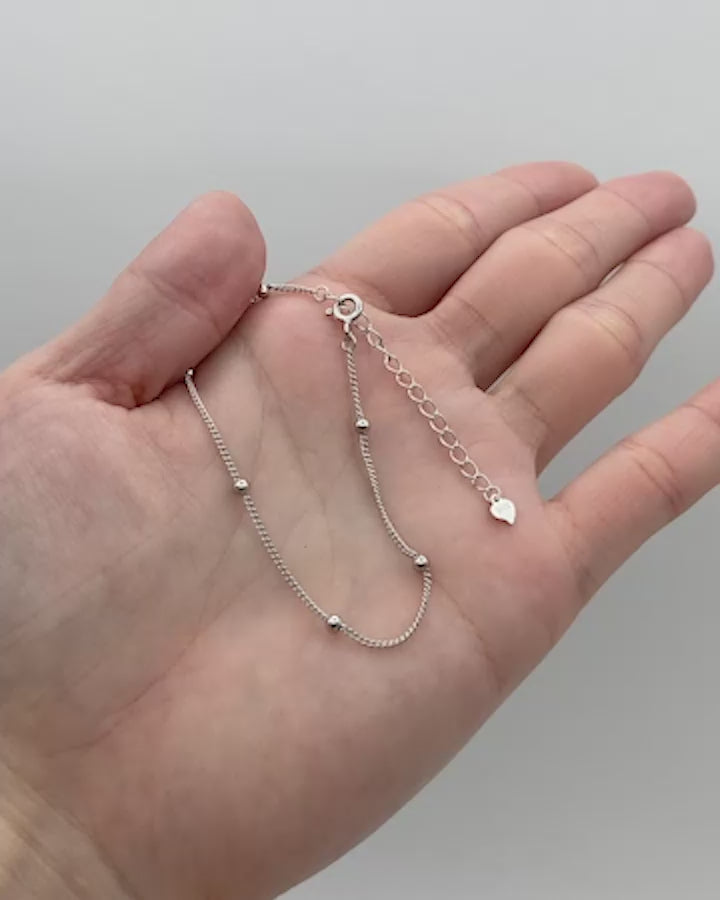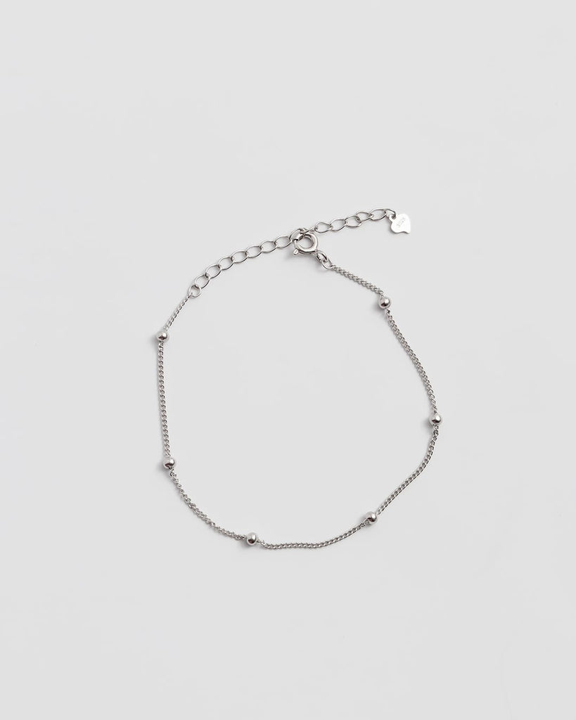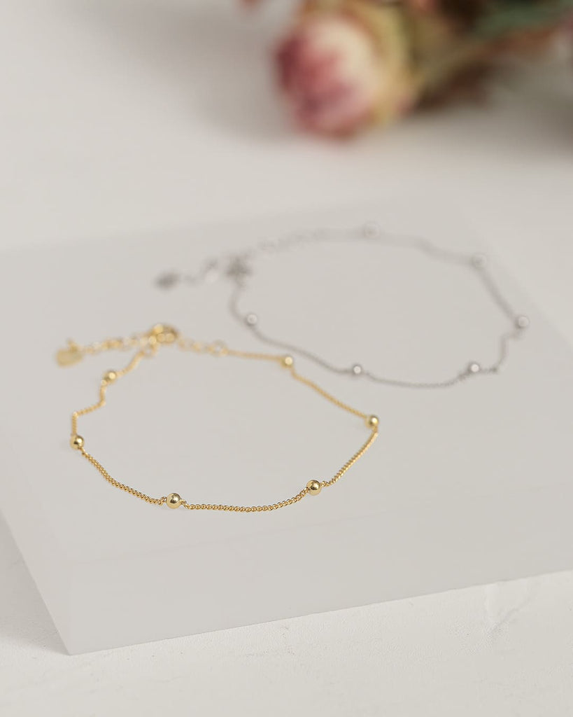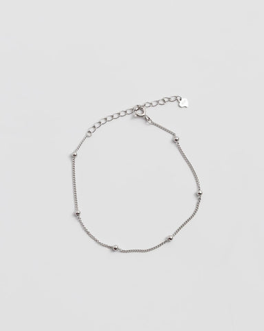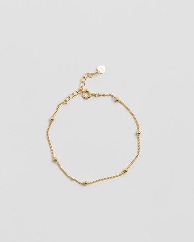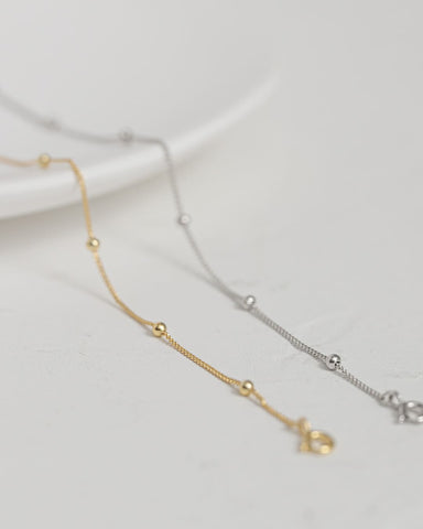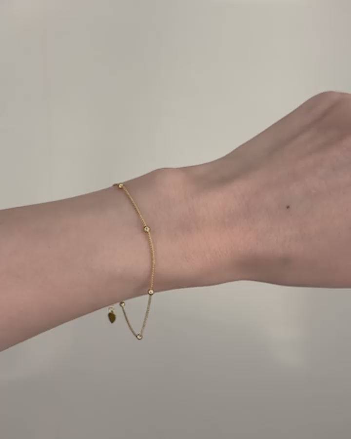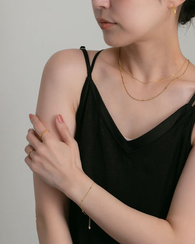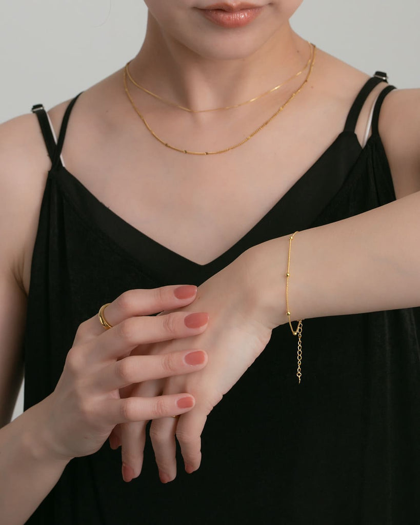 細いチェーンに、ころんとした小さなボールを等間隔にあしらったブレスレット。