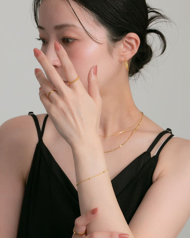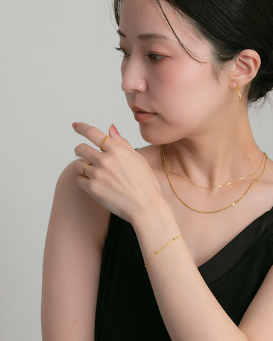 動くたび、手元でさりげなくきらりと光り、控えめながらも存在感を添えてくれます。
