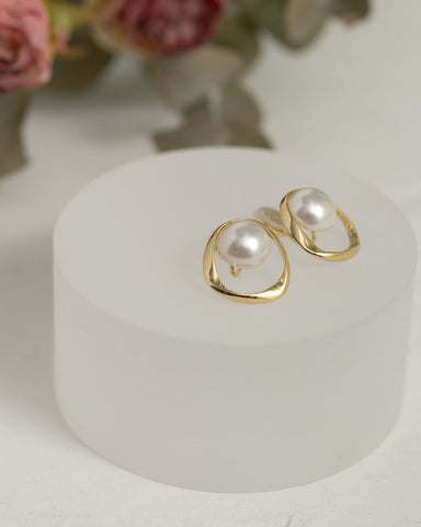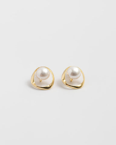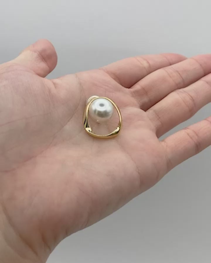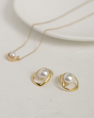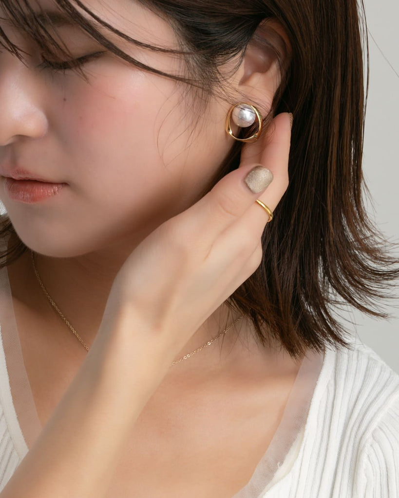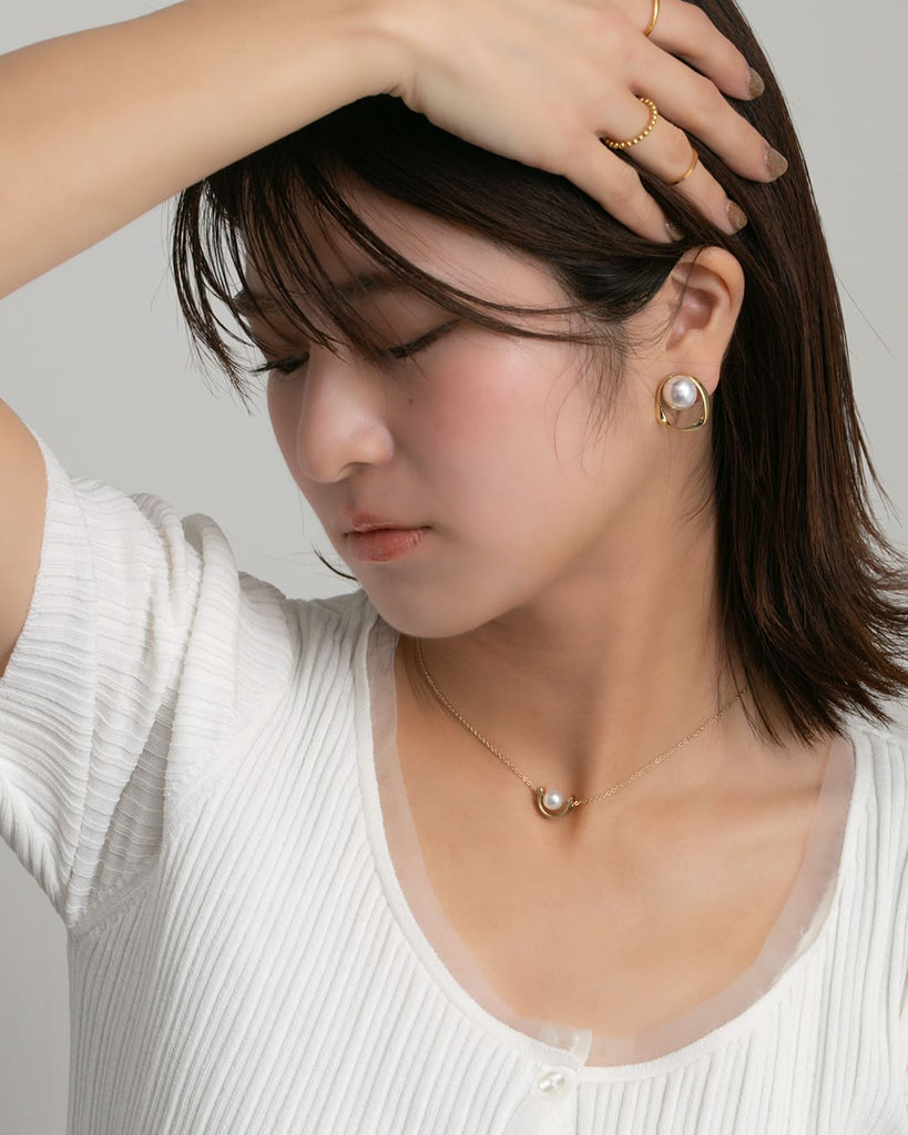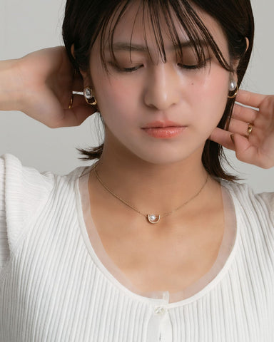 つるんと艶めくパールを囲むのは、ゆるやかなラインが描くゴールドのサークル。