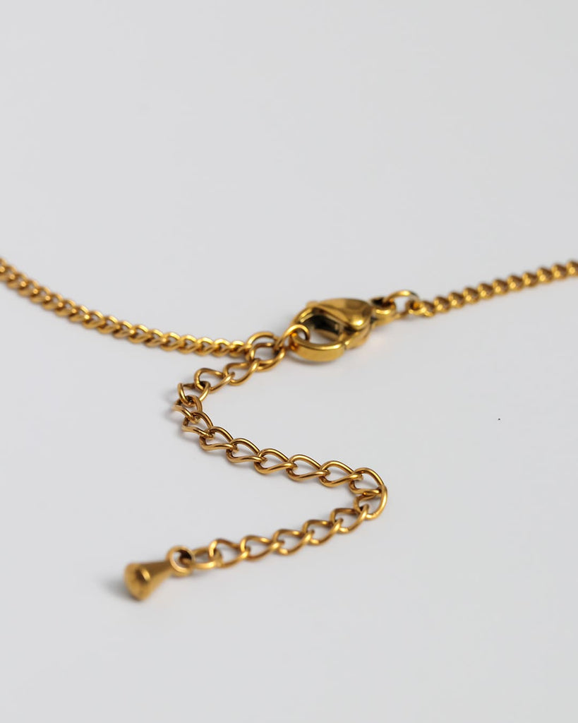 チェーンは細やかで肌になじみやすく、モチーフの立体感を引き立てる仕上がり。