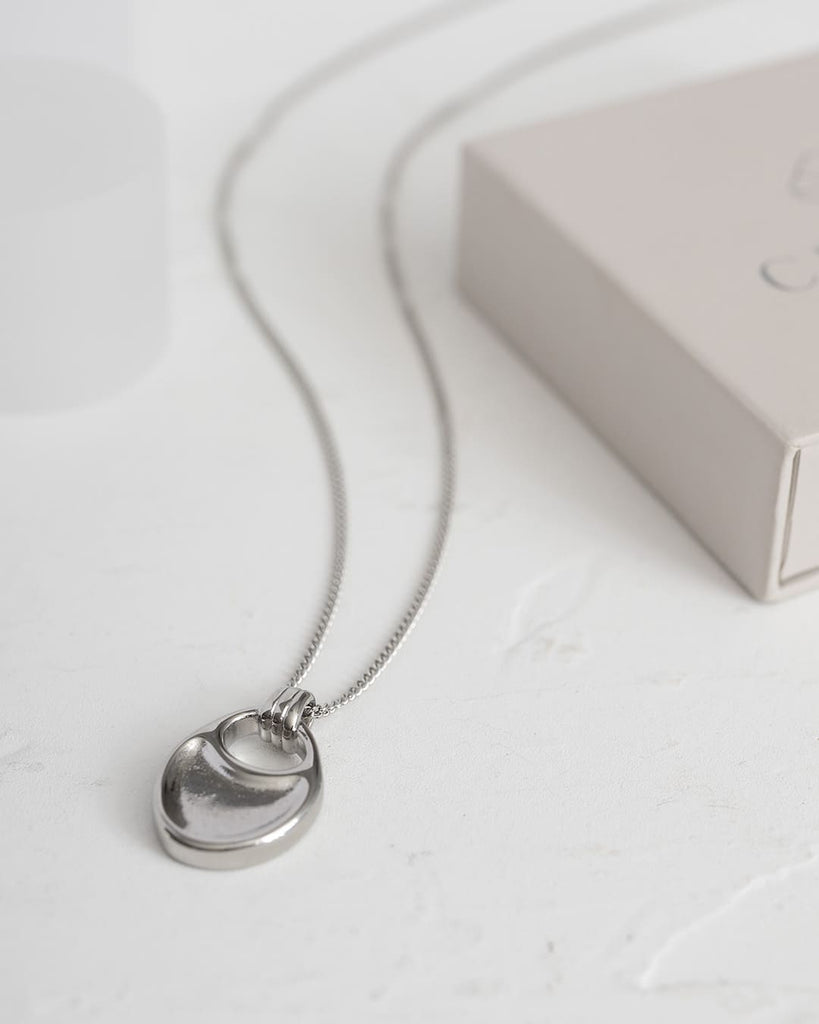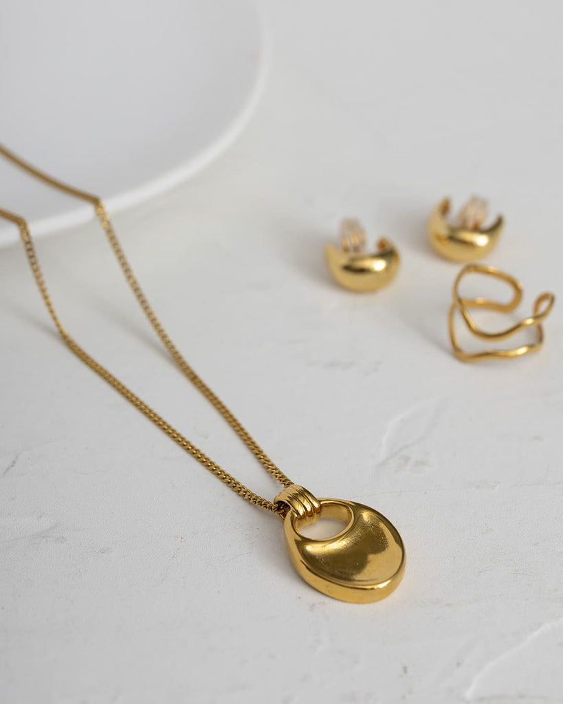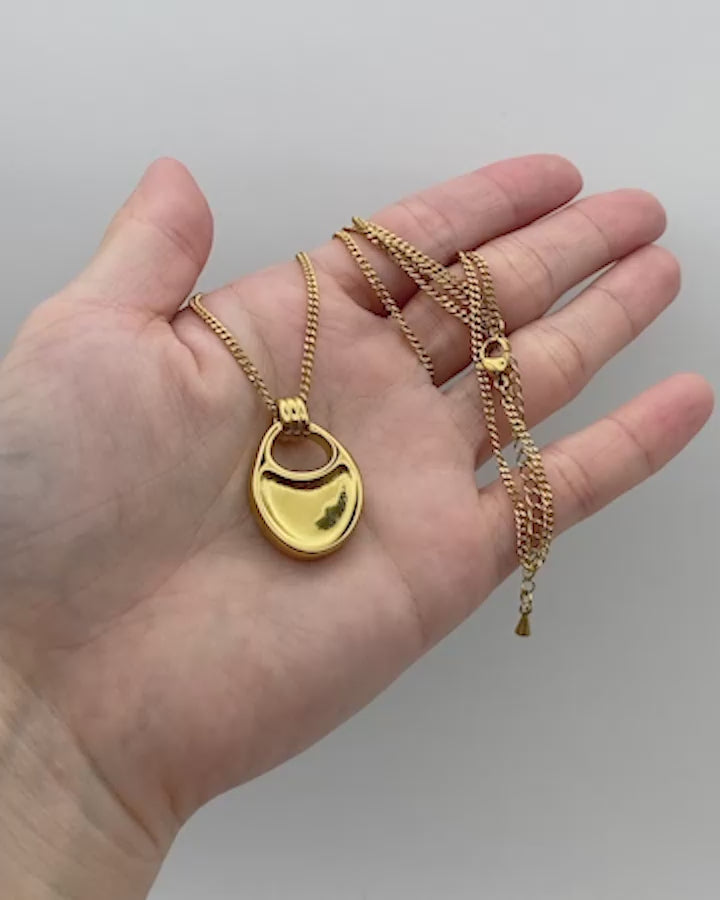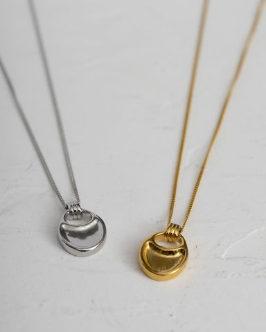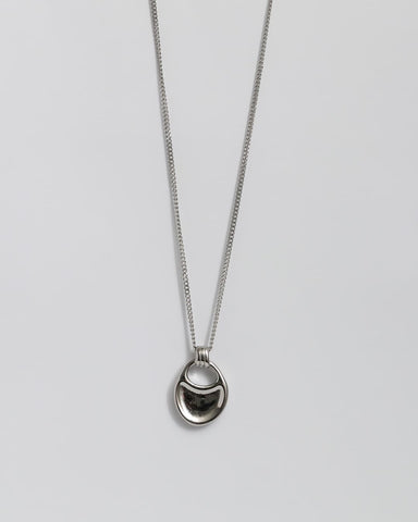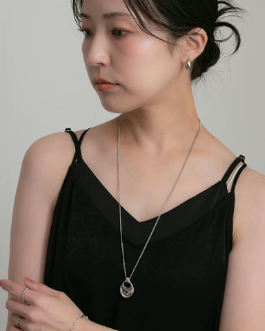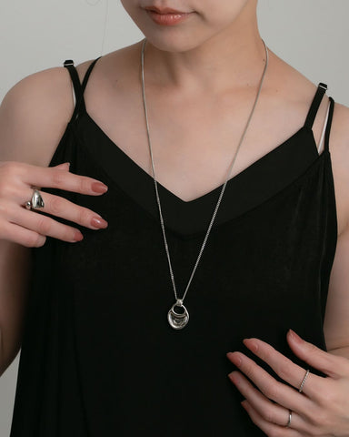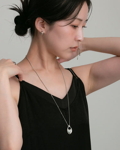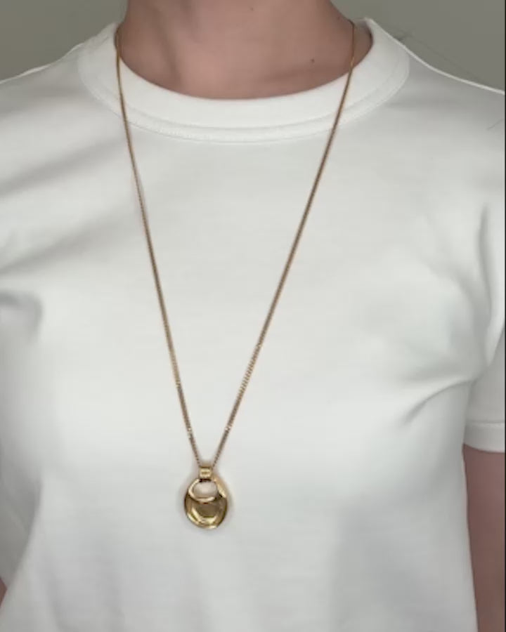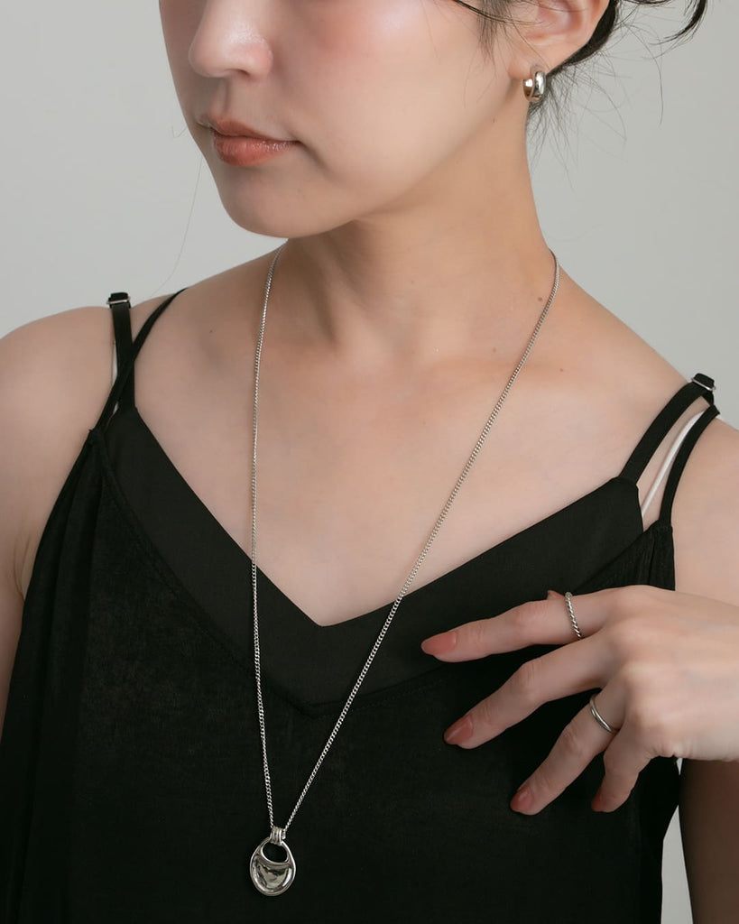 なめらかな曲線を描くモチーフが、胸元で静かに存在感を放つロングネックレス。