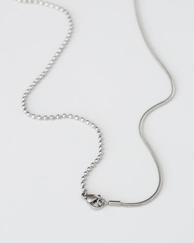 スネークチェーン×ボールチェーンの異素材ミックスが、大人の遊び心をくすぐります。