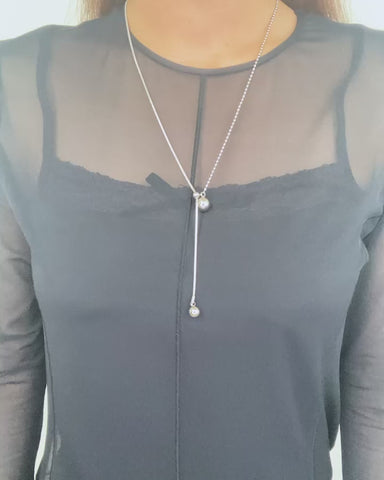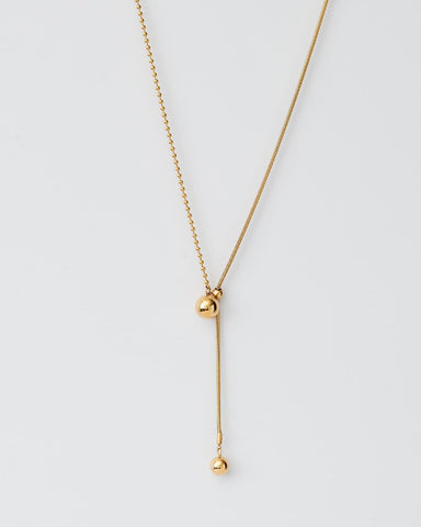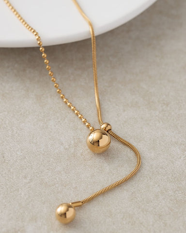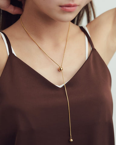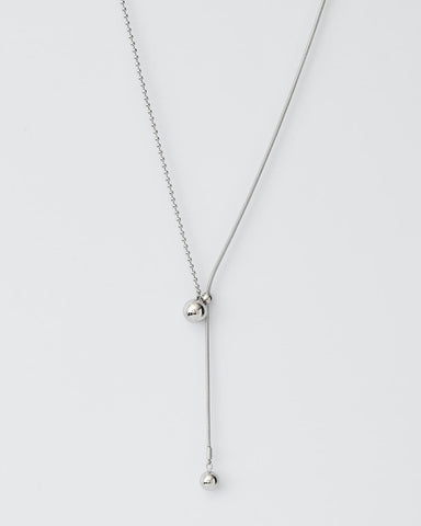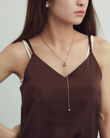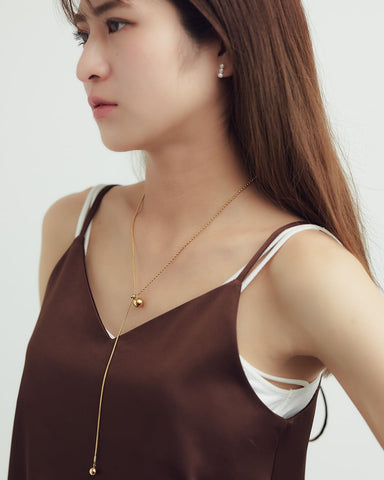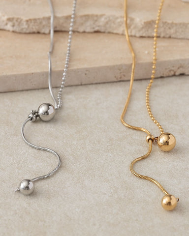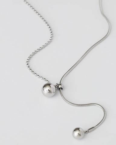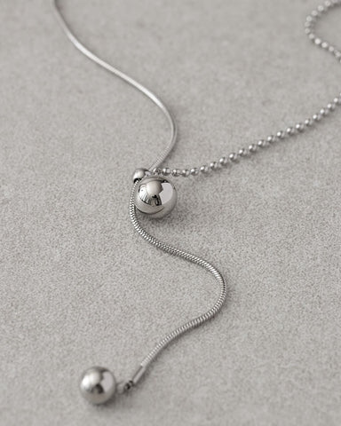 ころんとした小さなボールが、するんと滑るように動くスライドネックレス。