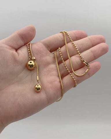 | サイズ | スネークチェーンの長さ:約32cm ボールチェーンの長さ:約26cm スネークチェーンの太さ:約1.7mm ボールチェーンの太さ:約2mm ボールモチーフ(大):約1cm ボールモチーフ(小):約8mm |
