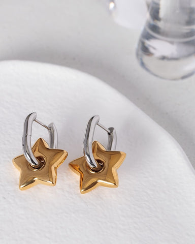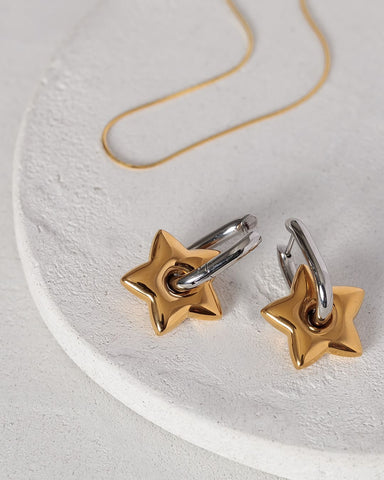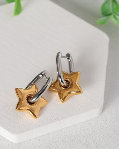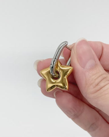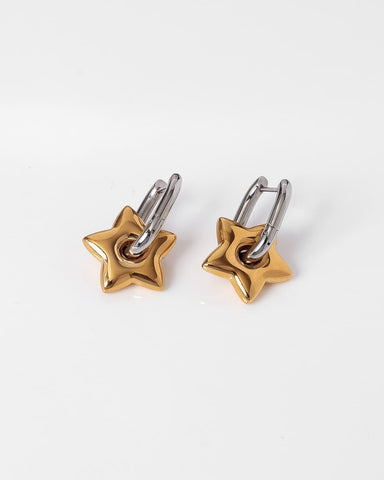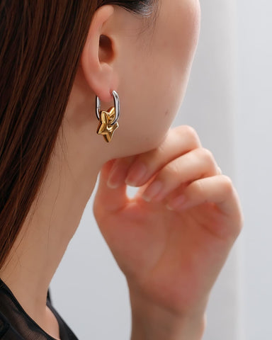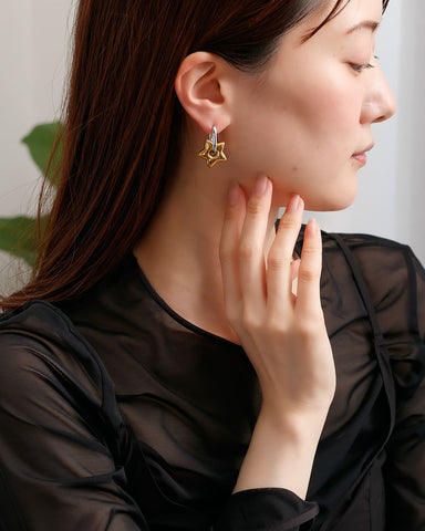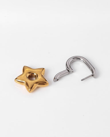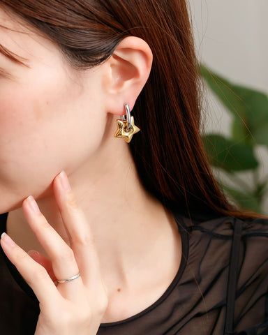 ぷっくりとした星のモチーフと、U型フープの組み合わせが特徴的なピアス。