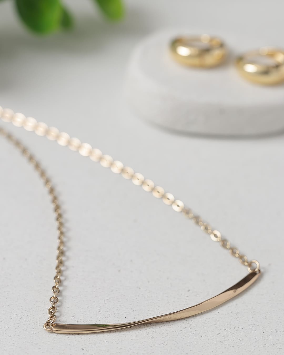 【10/24(金)20:00~新色追加!】【18KGP】半月モチーフプレートパールネックレス【日経WOMEN11月号掲載】