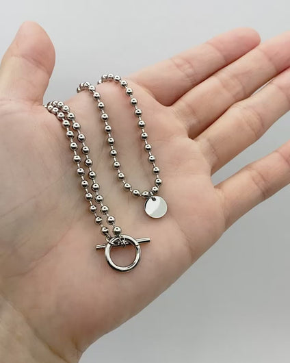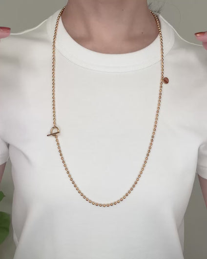 丸みのあるボールチェーンがつやっと光を反射し、シンプルながらも存在感を放つネックレス。