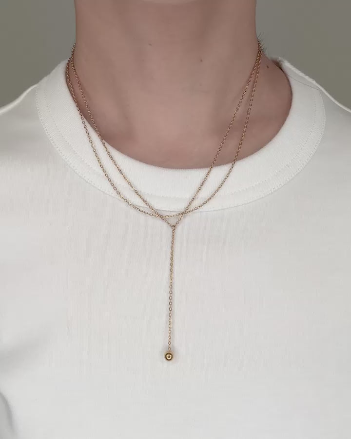 2本のチェーンが重なるデザインは、単体でつけてもレイヤードしているような奥行きを楽しめます。