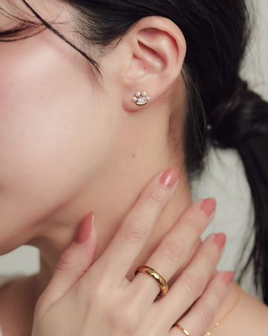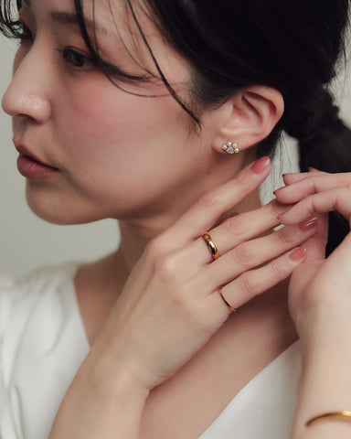 サイズは約7mm×10mmと小ぶりながらも存在感があり、顔まわりにちょっとしたアクセントをプラス。