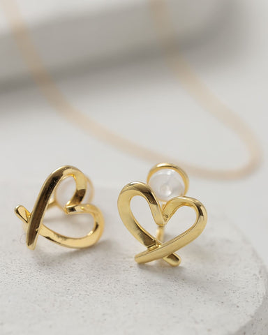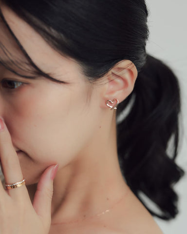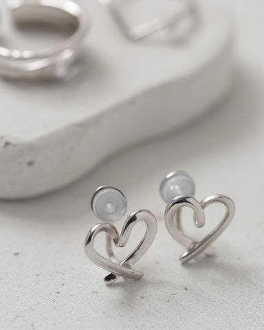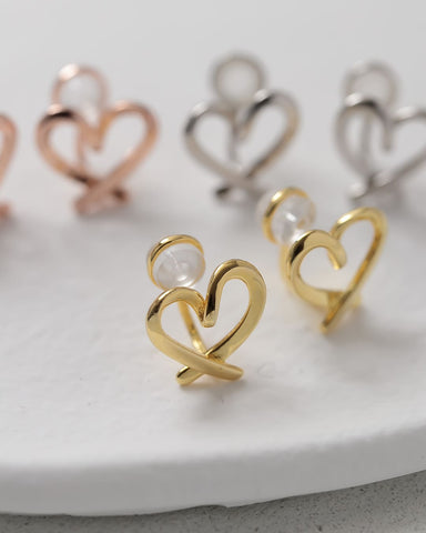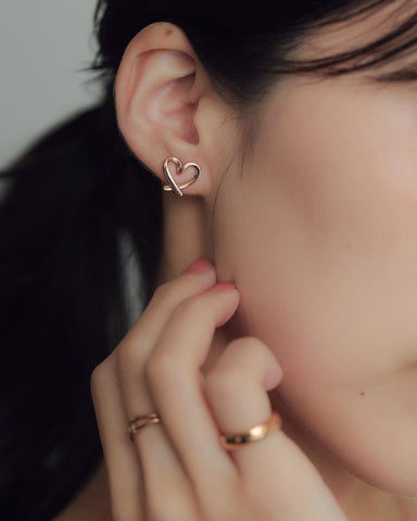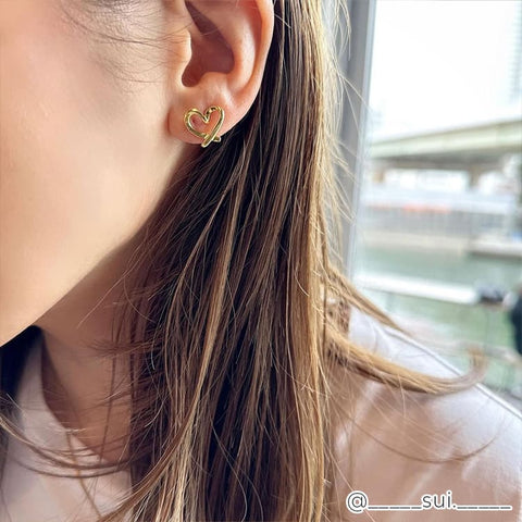 手書きのようなハートマークが可愛いノンホールピアス(イヤリング)。