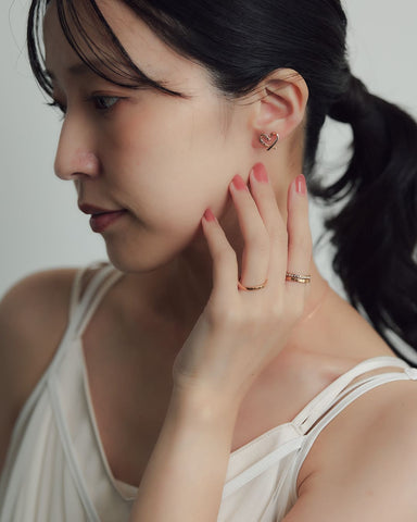 ハート部分は地金を丁寧に曲げて形づくられており、ふっくらとした立体感が上品な印象を演出します。