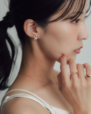 金具感を抑えたデザインで、イヤリングでもまるでピアスのような見た目に。