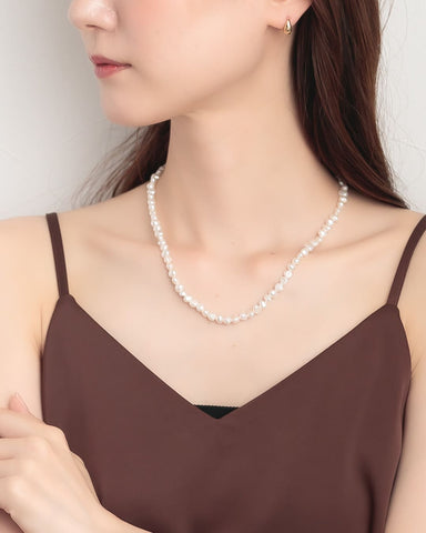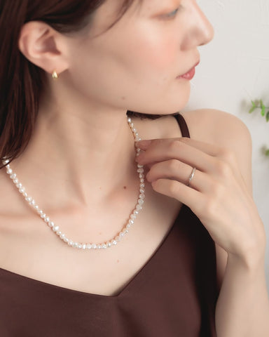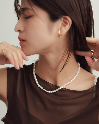 本真珠よりも気兼ねなく、毎日のファッションに取り入れやすい高品質な淡水パールを使用。