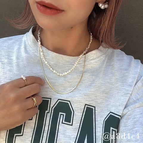 前からパールネックレスが欲しくて探していました!普通のTシャツでもこれを付けると大人可愛くなれます。