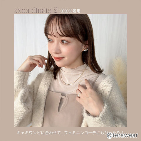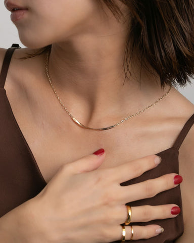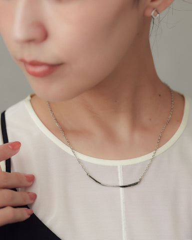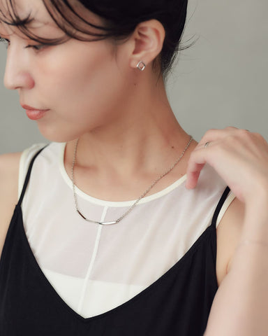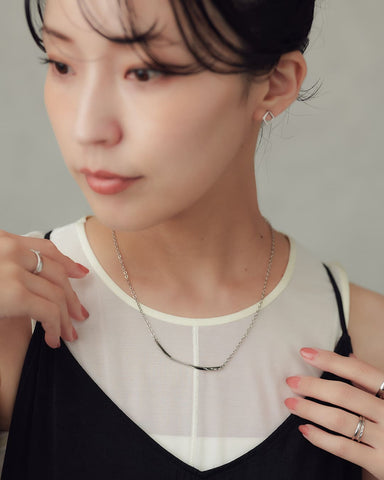 シンプルながらも、ほんのり個性を感じさせるデザインがデコルテにしなやかにフィット。