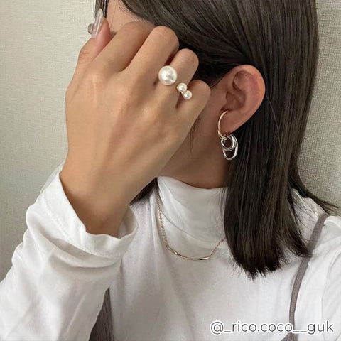 【10/31(金)20:00~再入荷】【18KGP】トリプルパールリング【NHKあさイチ紹介】【美人百花7月号掲載】![大小異なる大きさのパールが指先にアクセントをプラス]()  - 通常価格