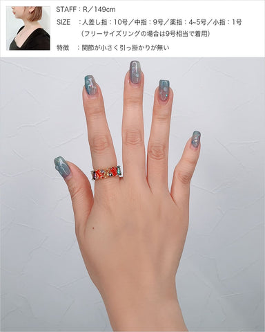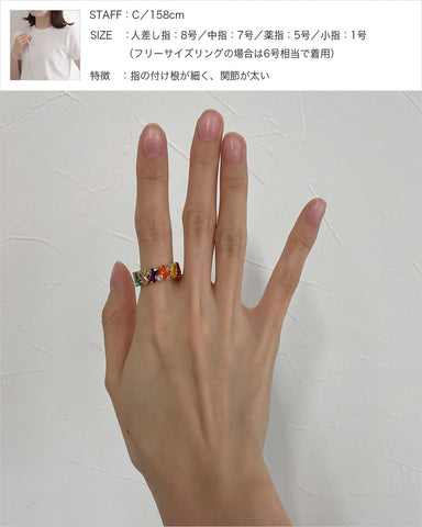 - Silver925・Silver950などの貴金属はやわらかく繊細な素材です。強い力や長時間の負担がかかると、変形や石取れの原因となることがございますので、お取り扱いにはご注意ください。