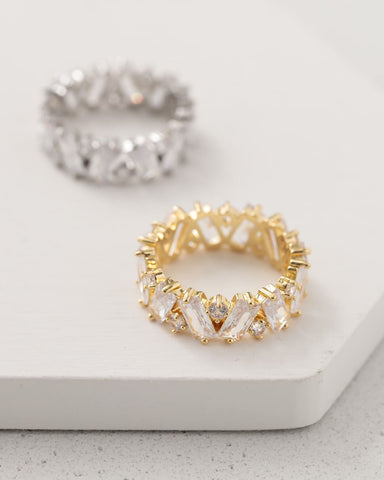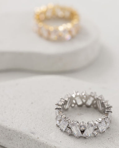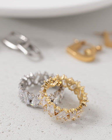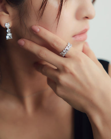 大小さまざまなスクエアカットのジルコニアを敷き詰め、1本つけるだけで印象的な手元へ。