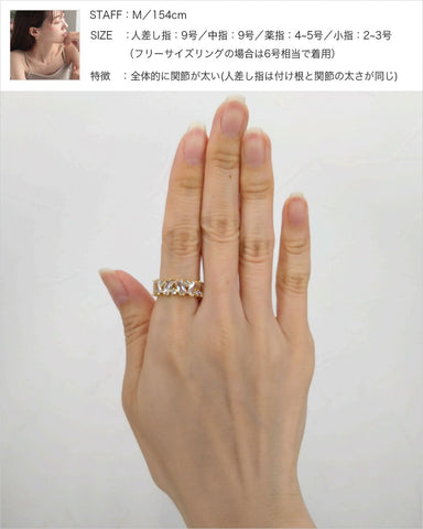 さらに、リング裏面は石座の間に抜きを入れることで、ムレにくく快適なつけ心地を実現。プチプラアクセサリーにありがちな“光が届かず輝かない”“通気性が悪く不快”といった悩みにもしっかり配慮。