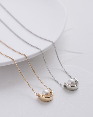 【10/24(金)20:00~新色追加!】【18KGP】半月モチーフプレートパールネックレス【日経WOMEN11月号掲載】