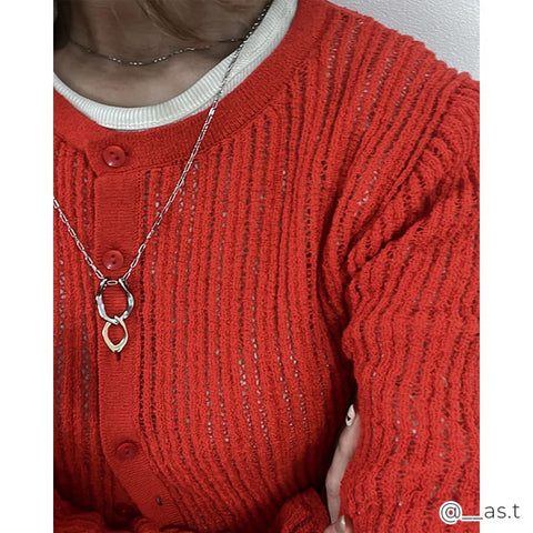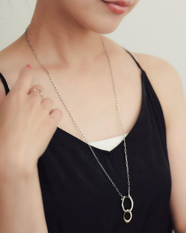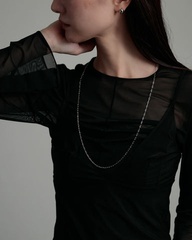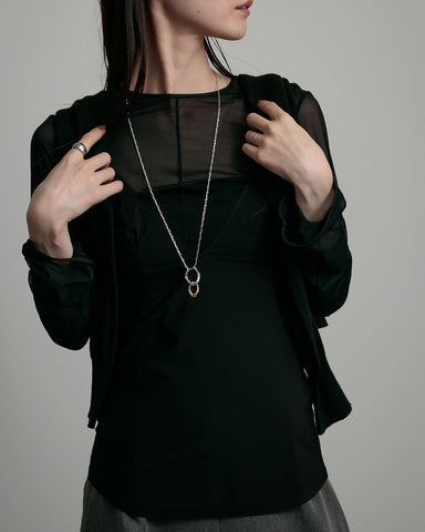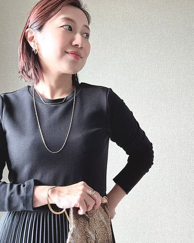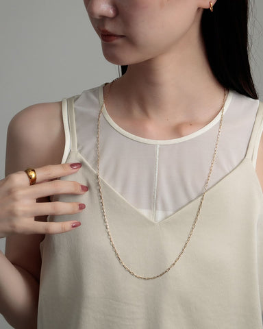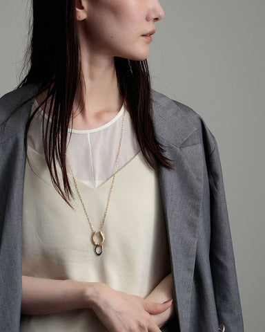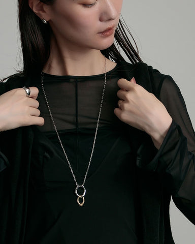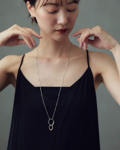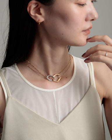 存在感のあるモチーフと、コマの目が大きなチェーンは一見重厚感がありそうに見えますが、長さがあるネックレスだからこそ、重くなりすぎないように抜け感のあるチェーンを使い、軽やかで心地いい着用感を実現しました。