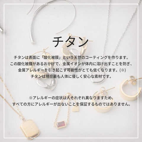 | 素材 | チタン合金(ゴールド/18KGP・シルバー/ロジウムコーティング・ピンクゴールド/金メッキ) ※ニッケルフリー |