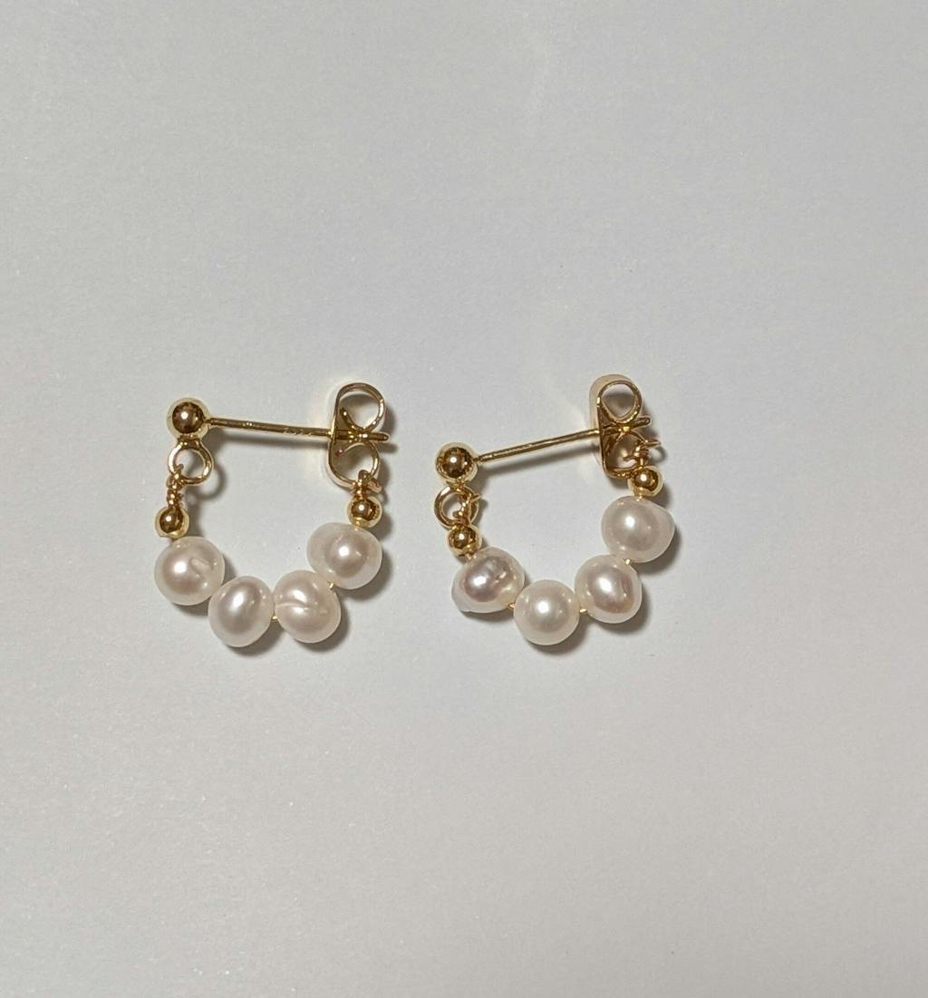 | サイズ | 全長(パール4つ分):約2.7cm パール直径:約5mm ポストの太さ:0.7mm ポストの長さ:約1cm |