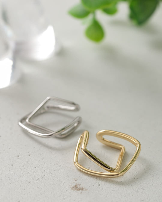 【12/19(金)20:00~再入荷】【14KGP】ダブルラインスクエアモチーフイヤーカフ