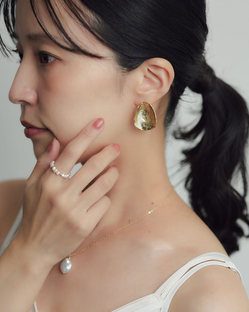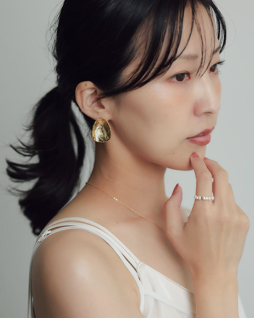 耳にぴたっと寄り添うサイズ感ながら、自然な凹凸で抜け感があり、重たく見えません。