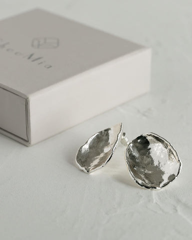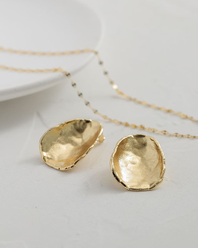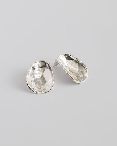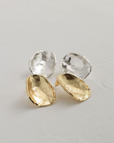 ラフに叩き出したような、ざらっとした表情が魅力のメタルプレートピアス。