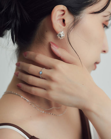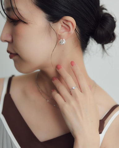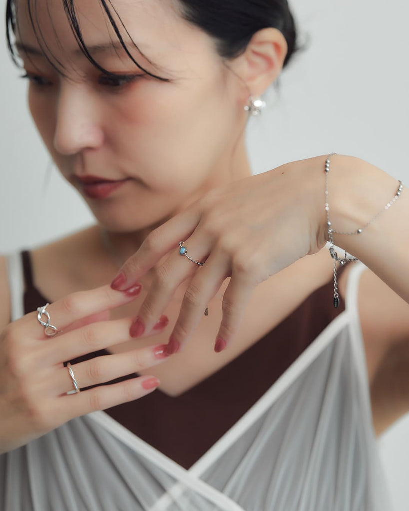 - Silver925・Silver950などの貴金属はやわらかく繊細な素材です。強い力や長時間の負担がかかると、変形や石取れの原因となることがございますので、お取り扱いにはご注意ください。