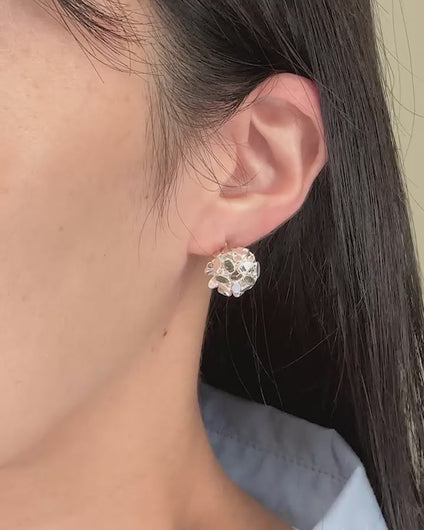耳元にころんとのる丸みシルエットから、まるで光の粒がふわっと舞い上がるように輝きがこぼれます。