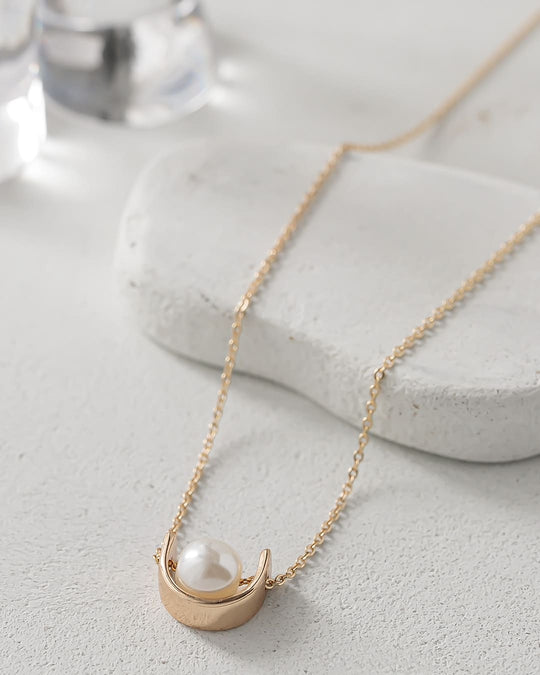 【10/24(金)20:00~新色追加!】【18KGP】半月モチーフプレートパールネックレス【日経WOMEN11月号掲載】