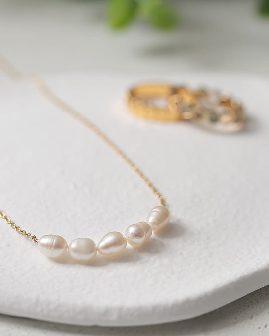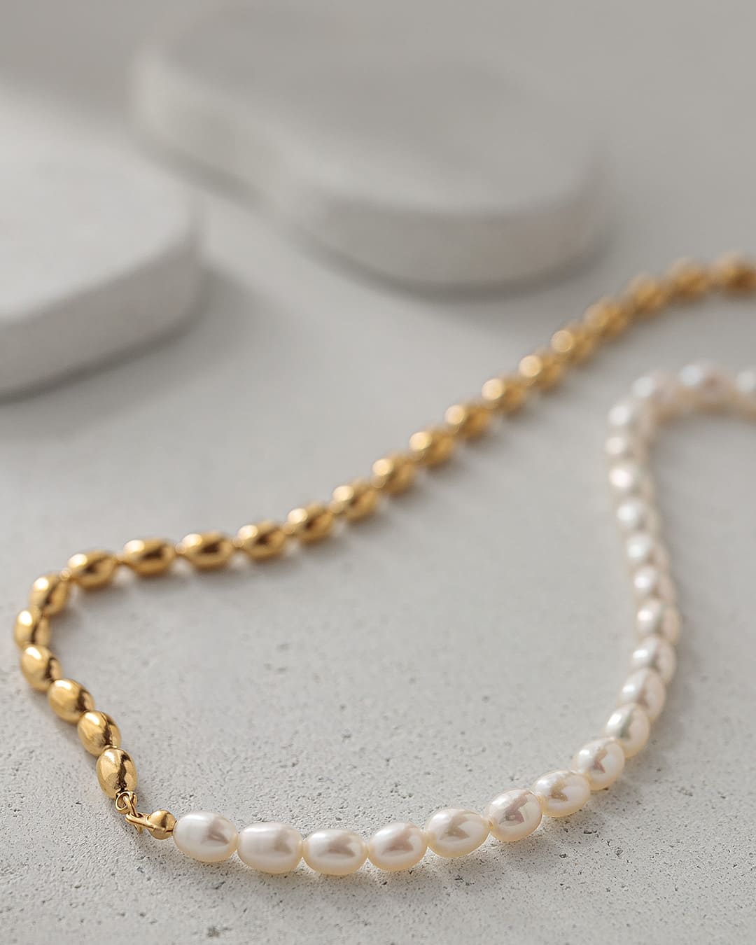 たとえば、パールアイテムならバロックパール、淡水パール。素材は18Kやシルバー925を使用したものだと、永く使えるので日々の普段使いにもおすすめです。