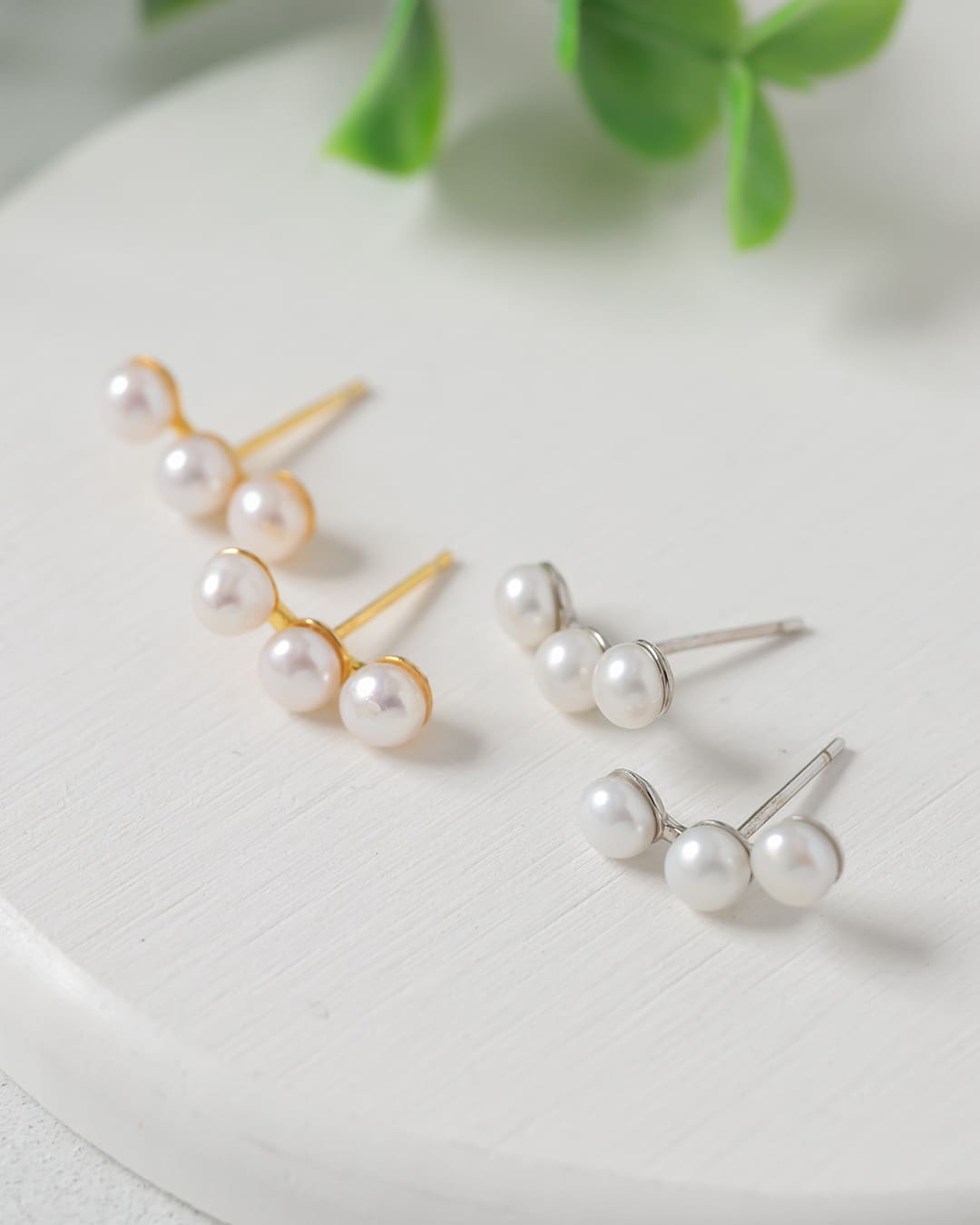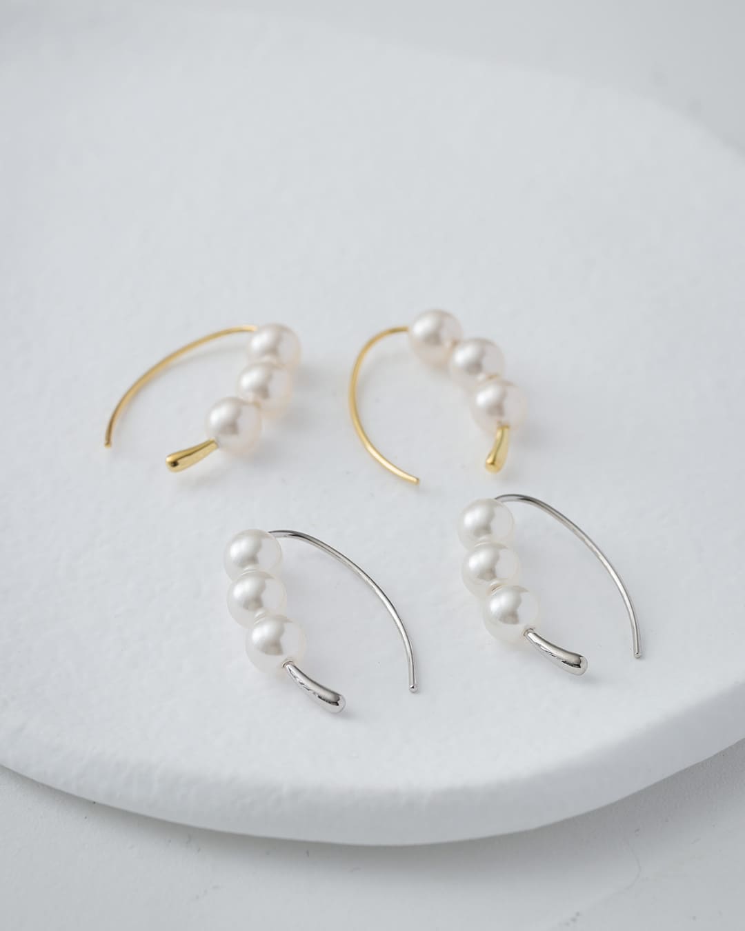【10/24(金)20:00~再入荷】【S925/18KGP】3連パールピアス【美人百花7月号掲載】