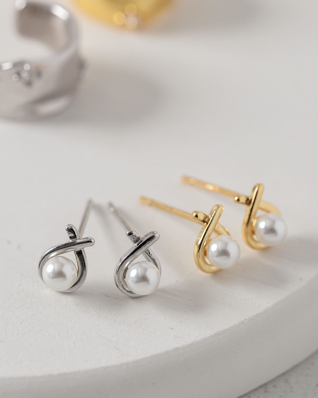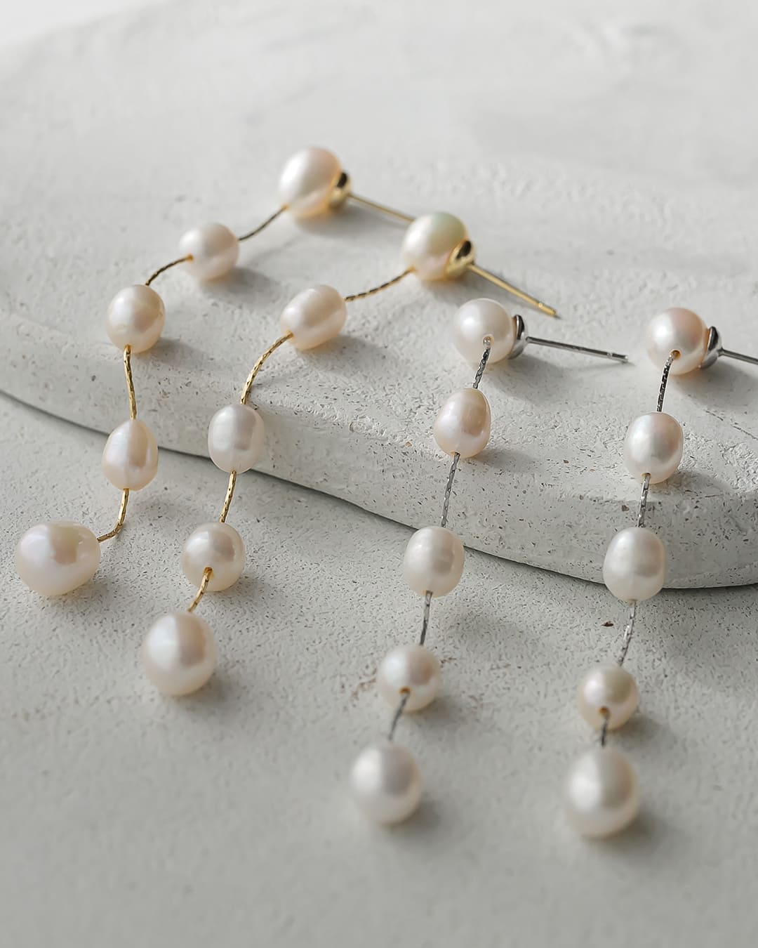 【10/3(金)20:00~再入荷】【S925/14KGF】アシンメトリーノットライン淡水バロックパールピアス【mina10月号掲載】