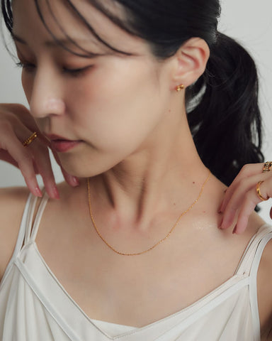 飾りすぎない美しさと、使うたびに感じる心地よさ。スクリューチェーンスライドネックレスは、日常に自然と溶け込みながら、自分らしさをそっと引き立ててくれる存在です。