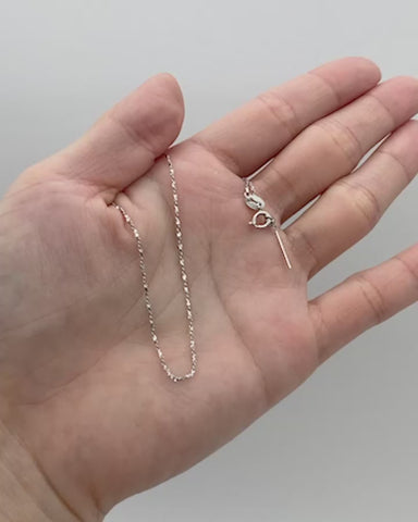繊細なスクリューチェーンが、動くたびにきらきらと光を反射するネックレス。