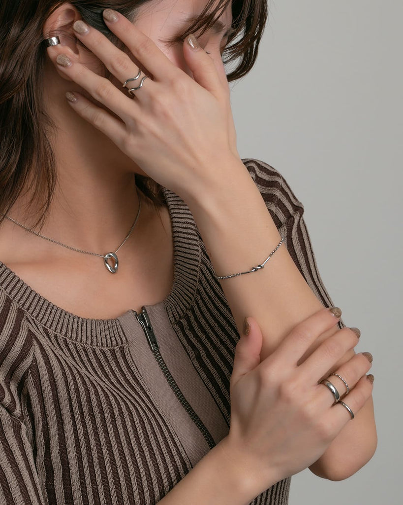 主張しすぎないデザインだから、デイリーコーデに自然に溶け込み、重ね付けのアクセントとしても活躍。カジュアルな装いにはほどよい女性らしさを、きれいめスタイルには抜け感をプラスしてくれます。