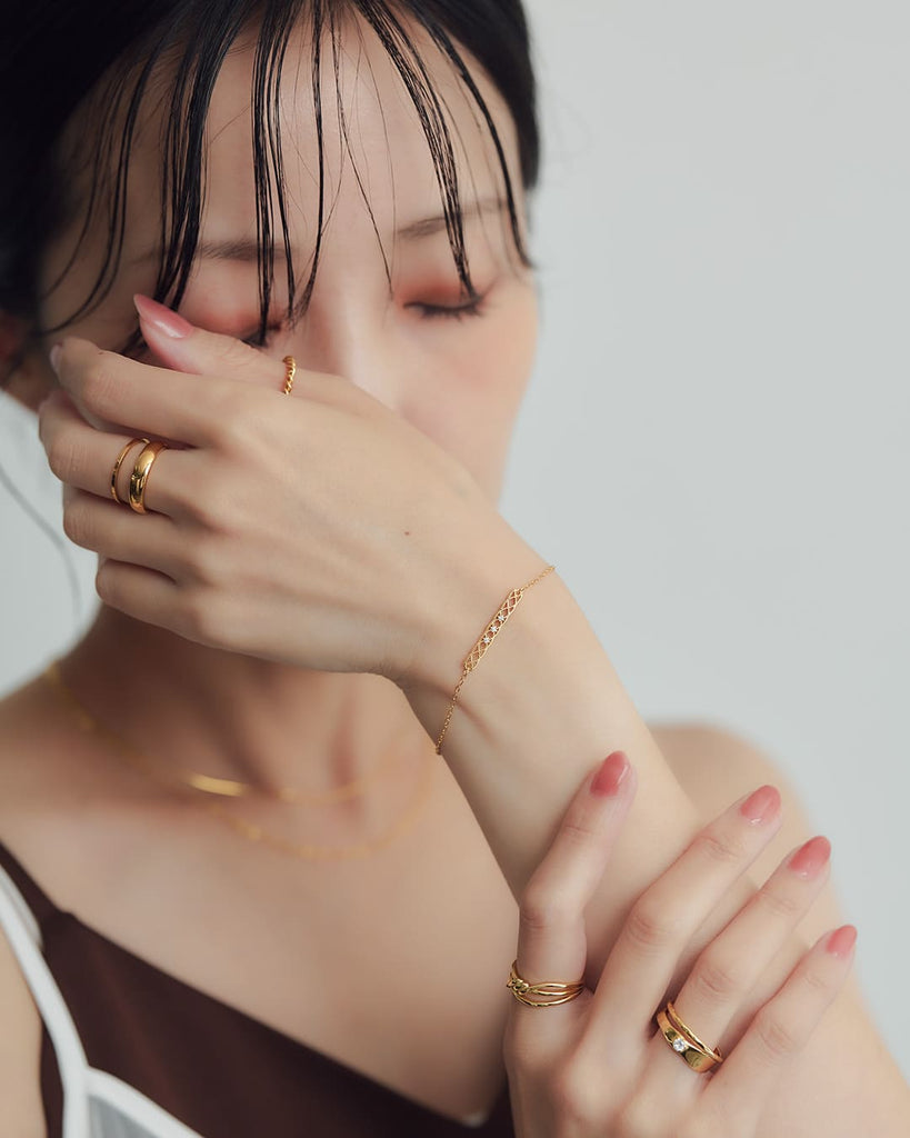 シンプルな装いにも映え、重ね付けもさらりと決まります。