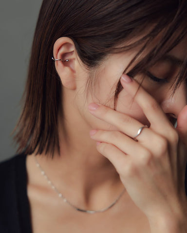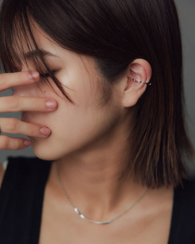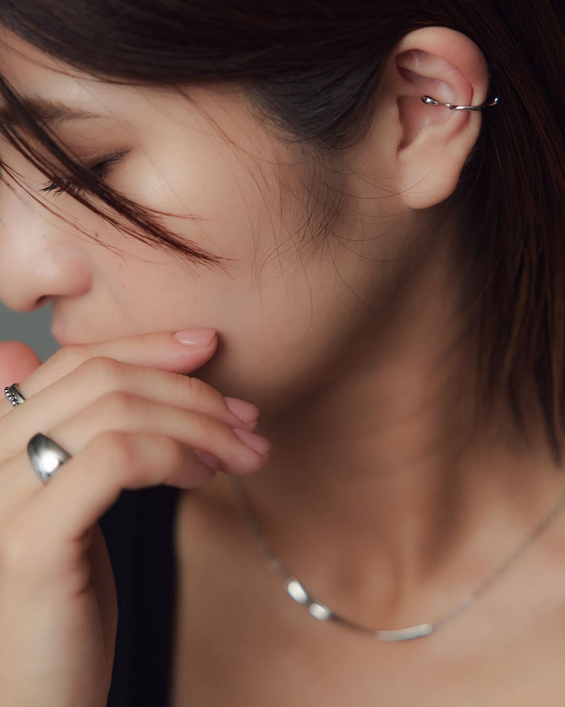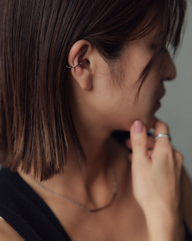 なめらかな曲線がすっと耳元を走るイヤーカフ。