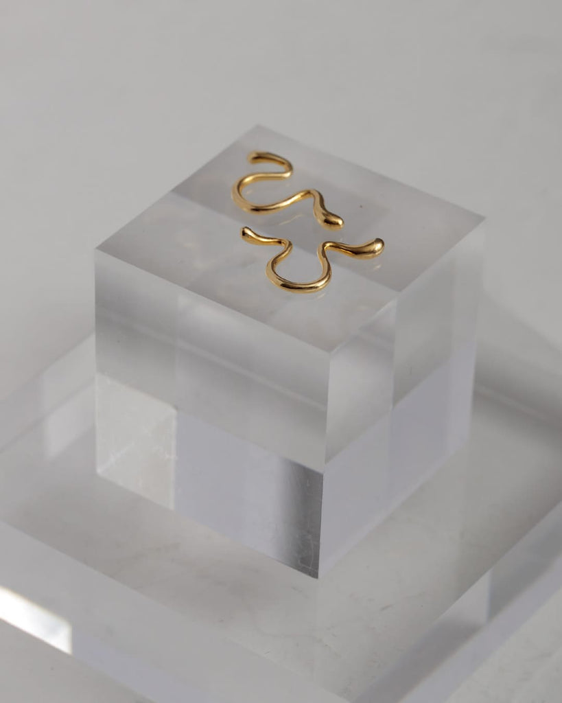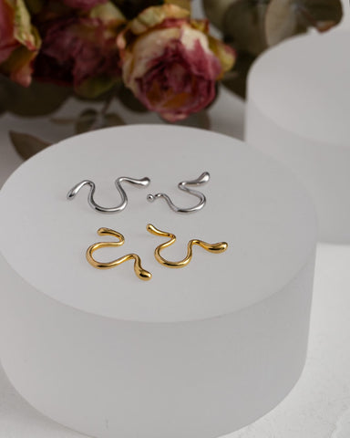 直線ではなく、やわらかく続くラインだからこそ生まれる自然な美しさ。耳元に添えるだけで、凛としながらもどこか穏やかな印象を与えてくれます。強さとしなやかさをあわせ持つ大人の女性像を重ねたネーミング。流れるようなフォルムが、日常の装いに静かな存在感を添えてくれるアイテムです。