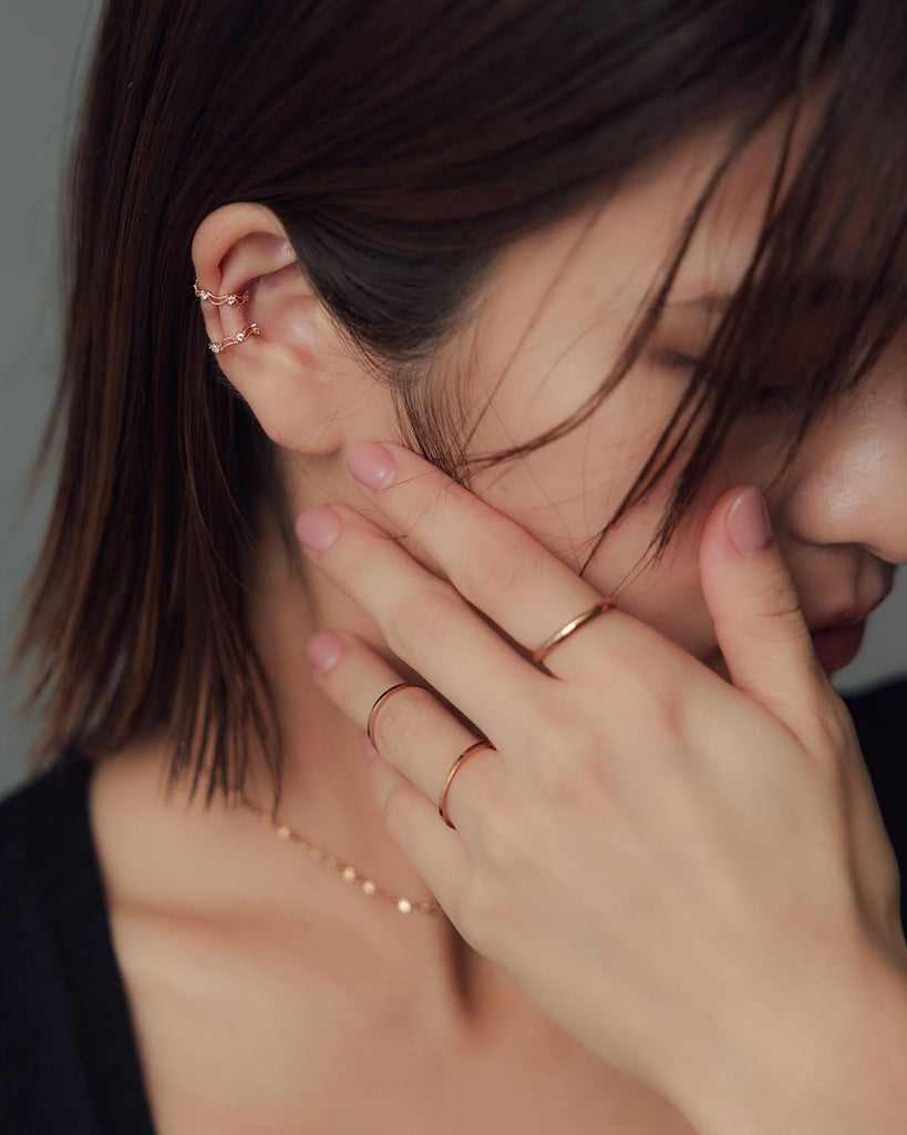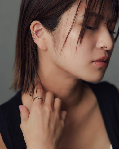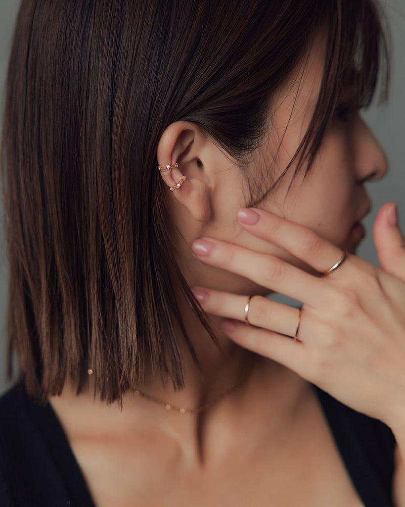 単品使いで上品にまとめるのはもちろん、他のイヤーカフやピアスと重ねて、耳元コーデを楽しむのもおすすめ。