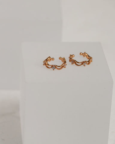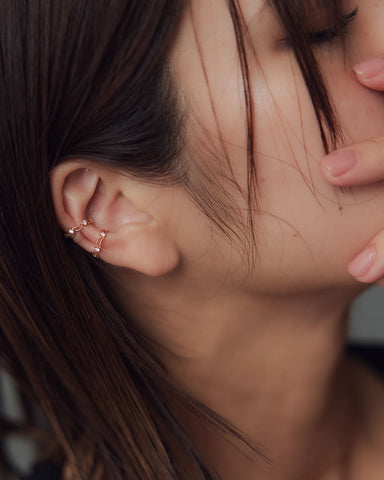 繊細なラインがきらりと連なり、耳元をそっと縁取るイヤーカフ。