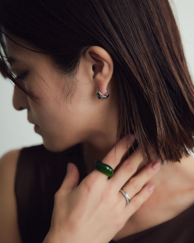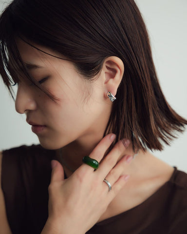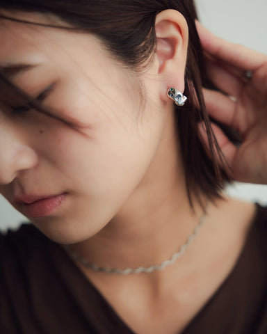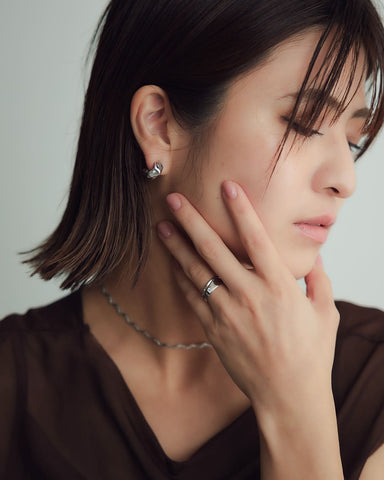 - Silver925・Silver950などの貴金属はやわらかく繊細な素材です。強い力や長時間の負担がかかると、変形や石取れの原因となることがございますので、お取り扱いにはご注意ください。