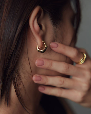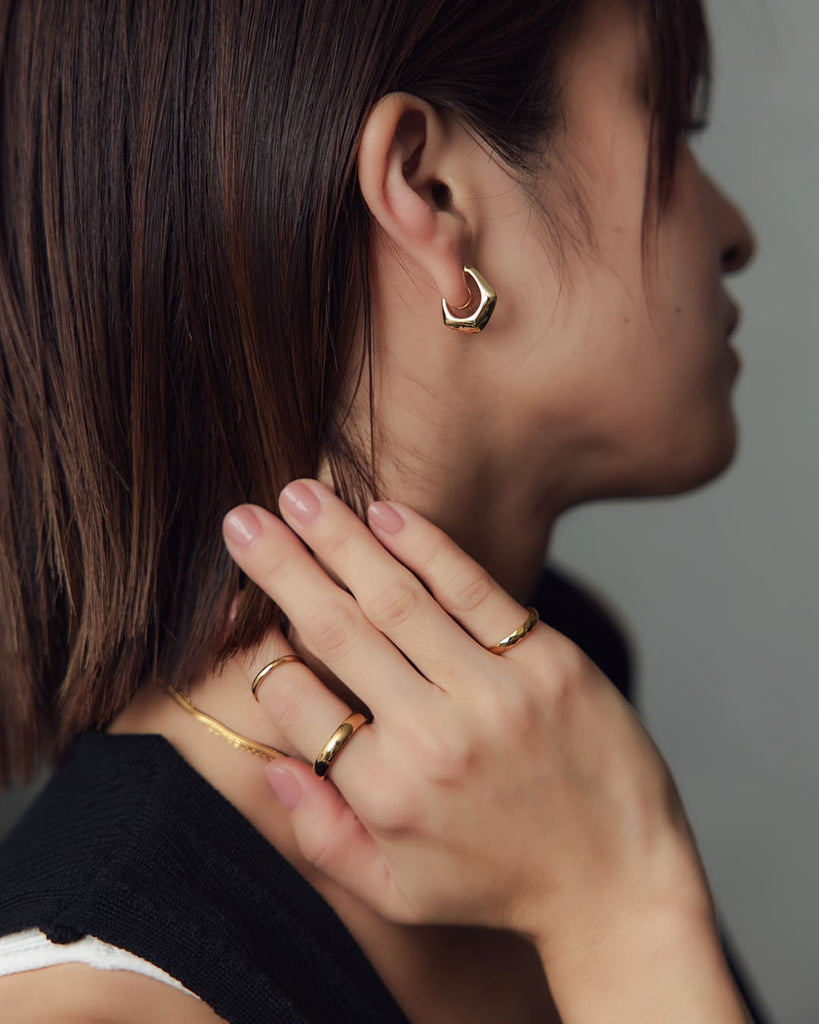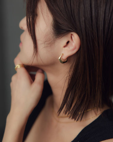 なめらかな曲線の中に、さりげない“エッジ”を効かせた立体フォルムのイヤリング。