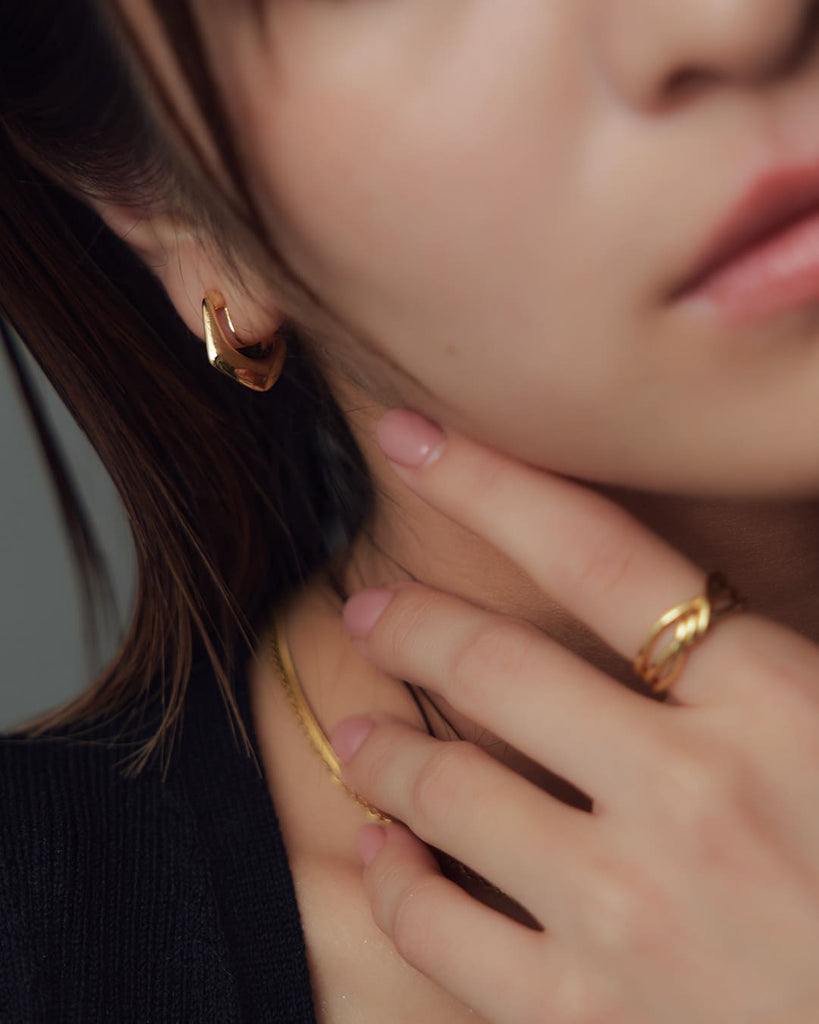 やわらかさと強さをあわせ持つ、大人のためのモダンイヤリングです。